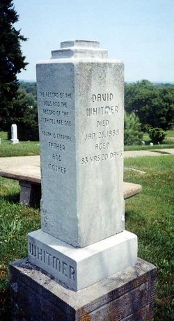 David Whitmer died in Richmond Missouri on January 25, 1888. He was 83 years old. His grave is 21 feet from the rear boundary of the cemetery and 33 feet east of the Middle Cemetery Road.