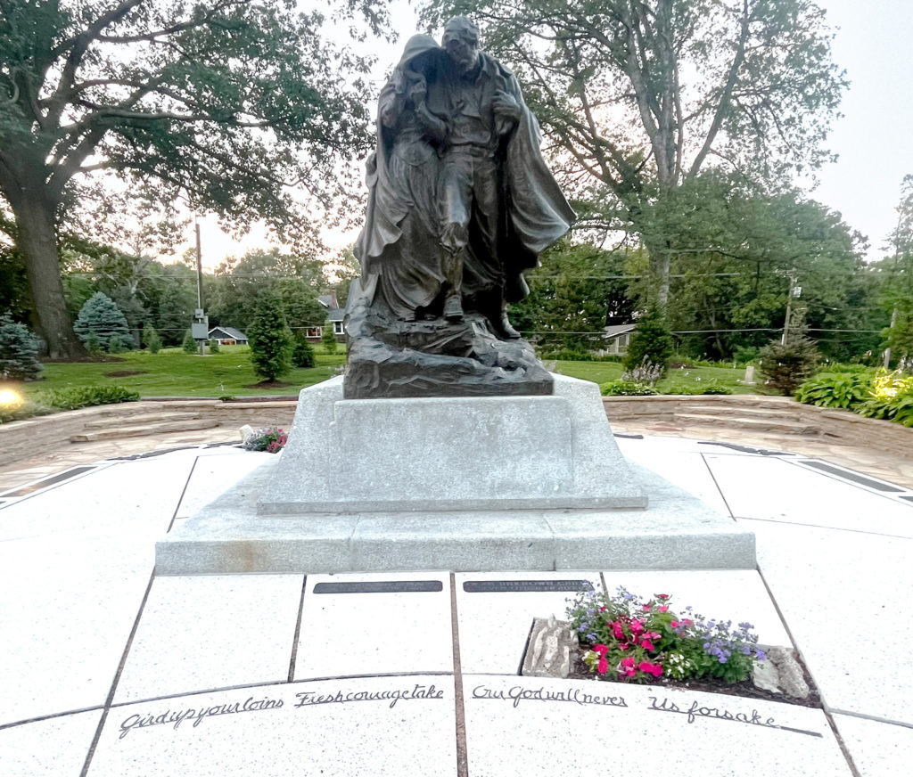 In the Winter Quarters Cemetery, there is a beautiful, large statue of a mother and father walking away from the grave of their child. Around this monument there are quotes and scriptures of the fortitude of the Saints who gave everything to follow the Savior Jesus Christ. The monument is done very well and is a powerful reminder of the sacrifices made for their posterity.