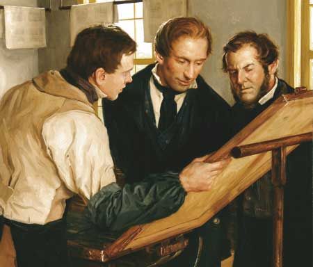 "Martin said, after continued translation they would become weary and would go down to the river and exercise by throwing stones out on the river, etc. While so doing on one occasion, Martin found a stone very much resembling the one used for translating, and on resuming their labor of translation, Martin put in place the stone that he had found. He said that the Prophet remained silent unusually and intently gazing in darkness, no traces of the usual sentences appearing. Much, surprised, Joseph exclaimed, 'Martin! What is the matter? All is as dark as Egypt.' Martin's countenance betrayed him, and the prophet asked Martin why he had done so. Martin said to stop the mouths of fools, who had told him that the Prophet had learned those sentences and was merely repeating them."