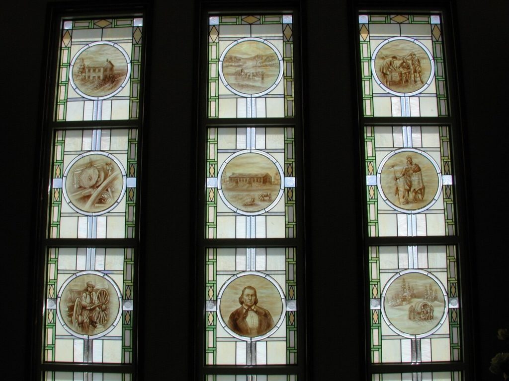 Tom Holdman studied and learned about the Pioneer Stories and integrated these wonderful and empowering stories into the windows.