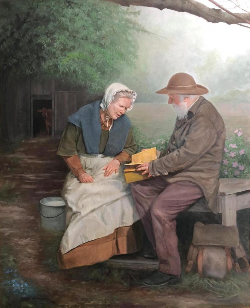 One night after working all day, I went out to the barn to milk the cows. There I met a stranger. He had something on his back that looked like a knapsack. At first I was a little afraid, but then he spoke in a kind and friendly voice that put me right at ease. The man talked about the nature of the work that was going on in my house, and it filled me with such inexpressible joy and satisfaction.